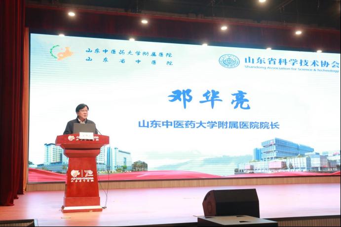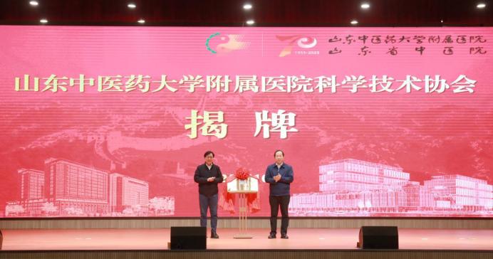 在全体参会人员的见证下,袁慎庆与邓华亮共同为“山东中医药大学附属医院科学技术协会”揭牌。