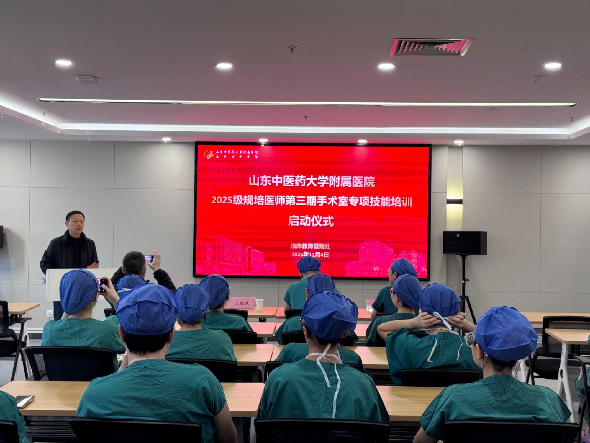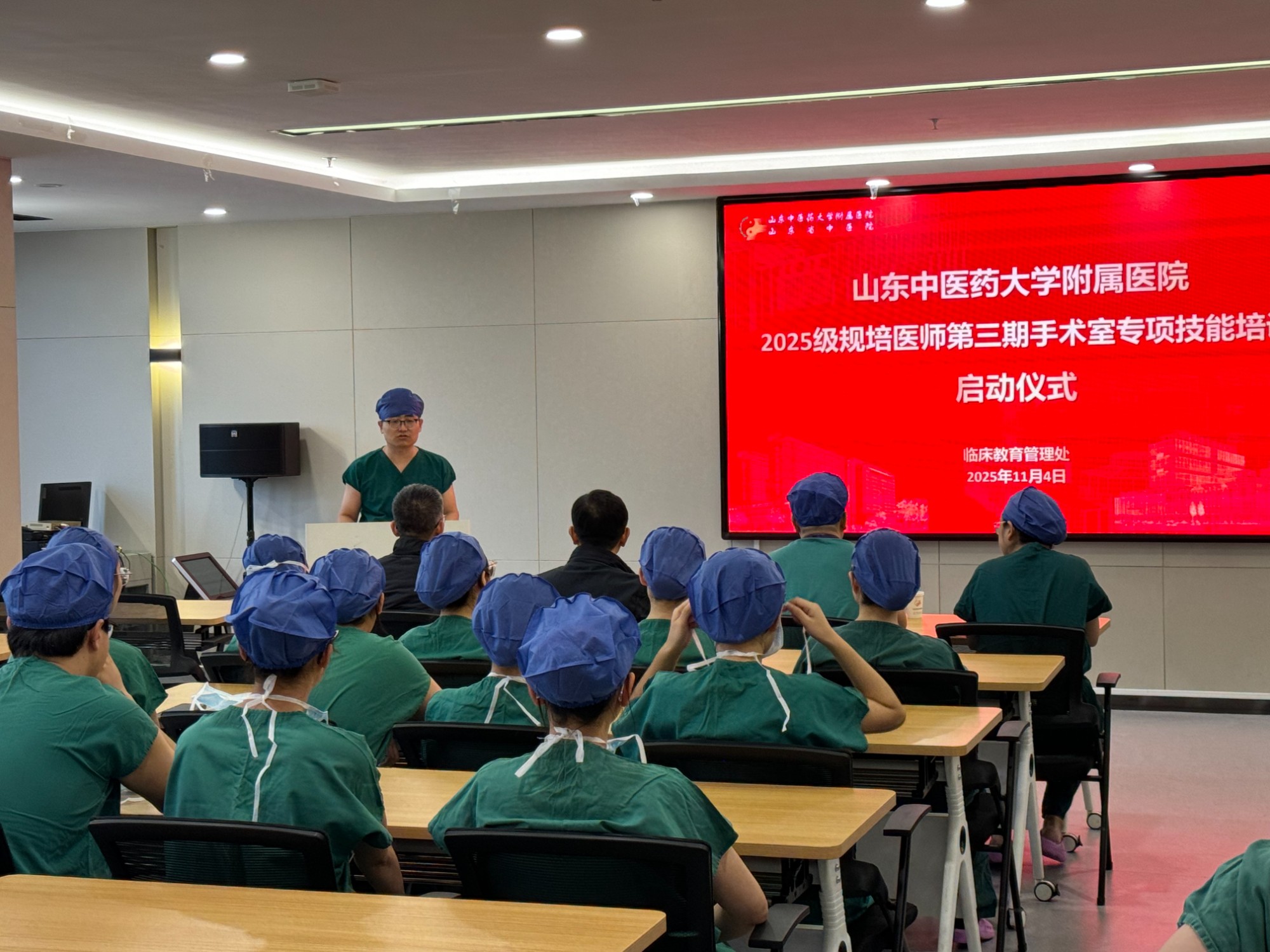2025.11.04为切实提升规培医师的手术操作规范性,2025年11月4日,山东中医药大学附属医院在千佛山院区手术中心,正式启动2025级规培医师手术室专项技能培训。临床教育管理处王经武处长出席并讲话,手术中心主任、护士长、带教老师及规培医师代表共同参加。